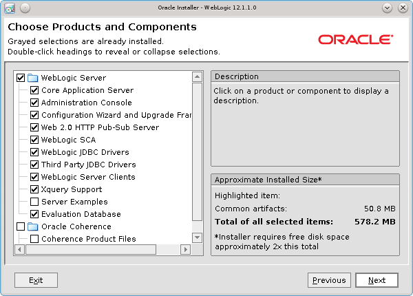 Note: I had to deselect the “Oracle WebLogic Scripting Tools” due to a conflict with PyDev. Since I do not need the WLST for now, this was the easier solution than de-installing PyDev.